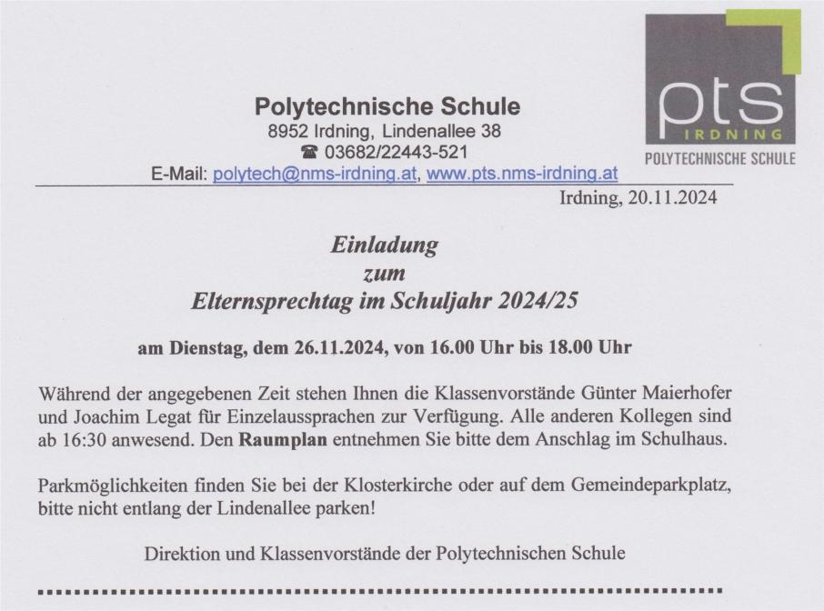 Elterninformationsabend: Donnerstag, 19.09.2024, 19:00 Uhr