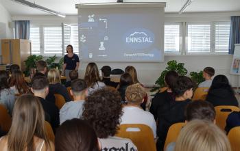 Wir alle kennen sie, die Produkte der Ennstal Milch KG! Und wer sie noch nicht kannte, hatte heute die Möglichkeit, Informationen über das Unternehmen, die Produkte und die Lehrlingsausbildung inklusive möglicher Schnuppertage bei einem der größten Arbeitgeber der Region einzuholen.