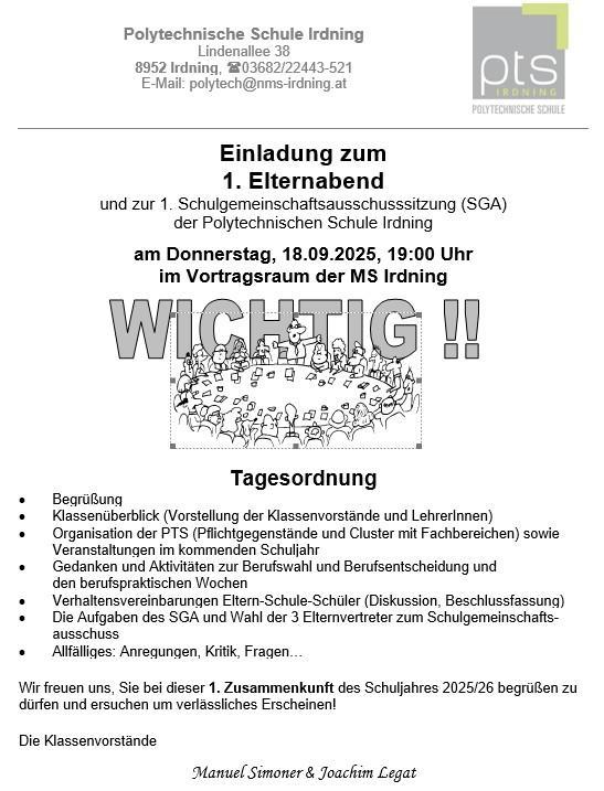 Elterninformationsabend: Donnerstag, 18.09.2025, 19:00 Uhr